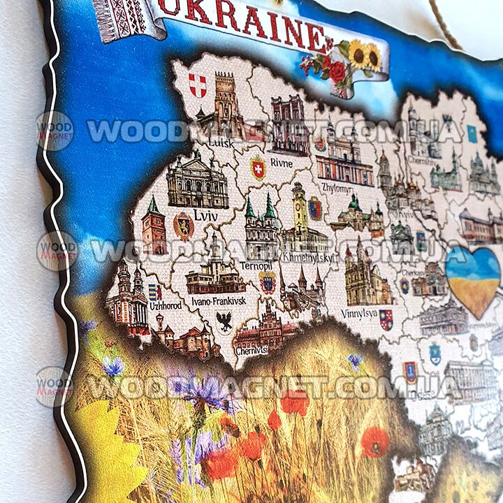 Дерев'яна карта України виготовлена на синьо - жовтому фоні нашого прапору та оздоблена українськими символами та визначними місцями кожного регіону, що може бути приємніше для очей? Ми пропонуємо яскраву, наповнену символами мапу, що буде радувати ваше серце не один рік. Екологічний матеріал і досвід нашого художника зроблять її унікальним доповненням до вашого будинку, квартири чи офісу, чи навіть,для ваших закордонних гостей.)) Карта пасує до будь якого інтер'єру, а кольори репрезентують наш культурний код. Мапа виготовляється в двох розмірах, а саме, А-4 та А-3 формату. Запрошуємо обрати та придбати свій оптимальний розмір)