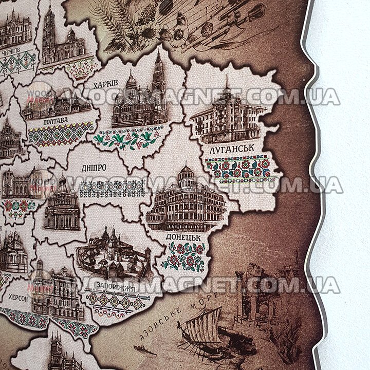 Кольорові карти це прекрасно, але як щодо стриманого варіанту? І він також у нас є! Пропонуємо вашій увазі карту "сепія" у разі необхідності підбору під мінімалістичний інтер'єр або офіс. Строгі лінії та стримана палітра пасуватиме до будь якого приміщення і при цьому прикрасить і збагатить його.