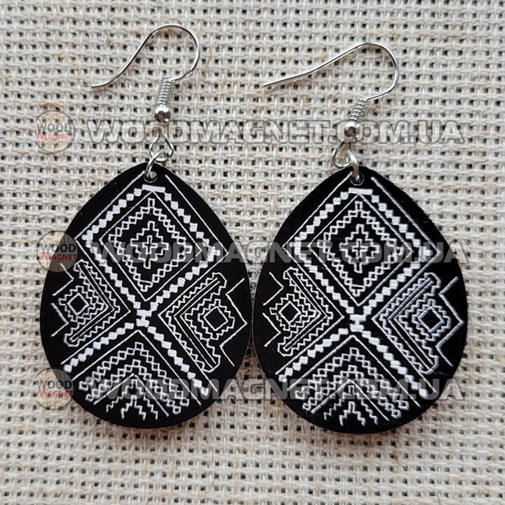Еко сережки з дерева. Розмір приблизно 3*3*0,3 см. Зображення нанесено з двох сторін.Чудово пасують до вишиванок і не тільки:))