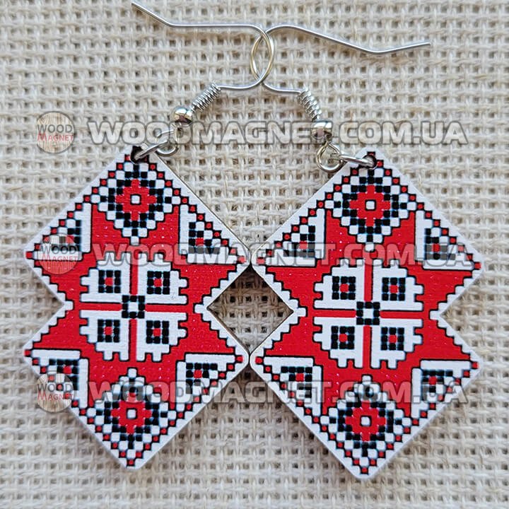 Еко сережки з дерева. Розмір приблизно 3*3*0,3 см. Зображення нанесено з двох сторін.Чудово пасують до вишиванок і не тільки:))