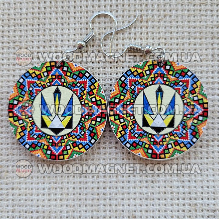 Еко сережки з дерева. Розмір приблизно 3*3*0,3 см. Зображення нанесено з двох сторін.Чудово пасують до вишиванок і не тільки:))