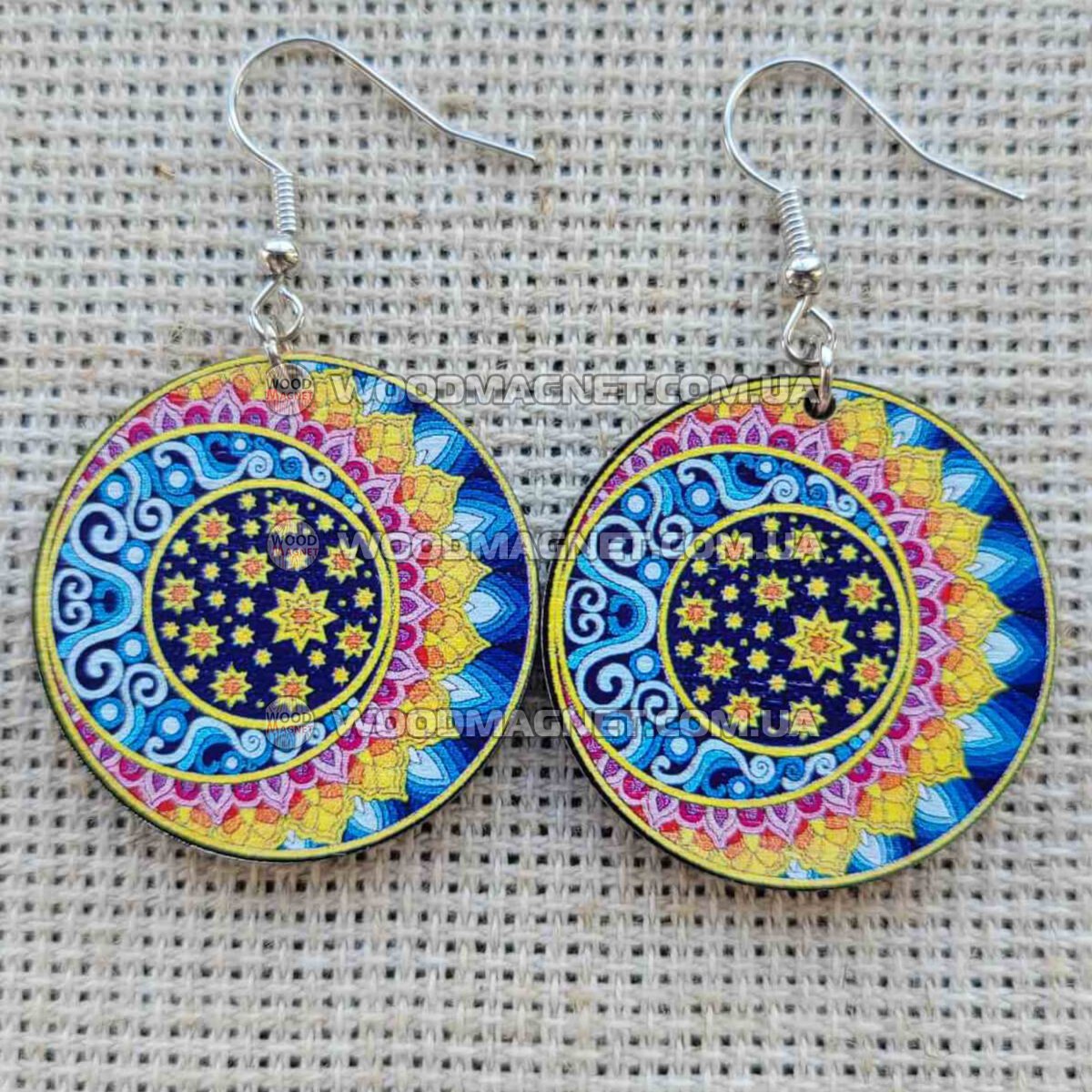 Еко сережки з дерева. Розмір приблизно 3*3*0,3 см. Зображення нанесено з двох сторін.Чудово пасують до вишиванок і не тільки:))