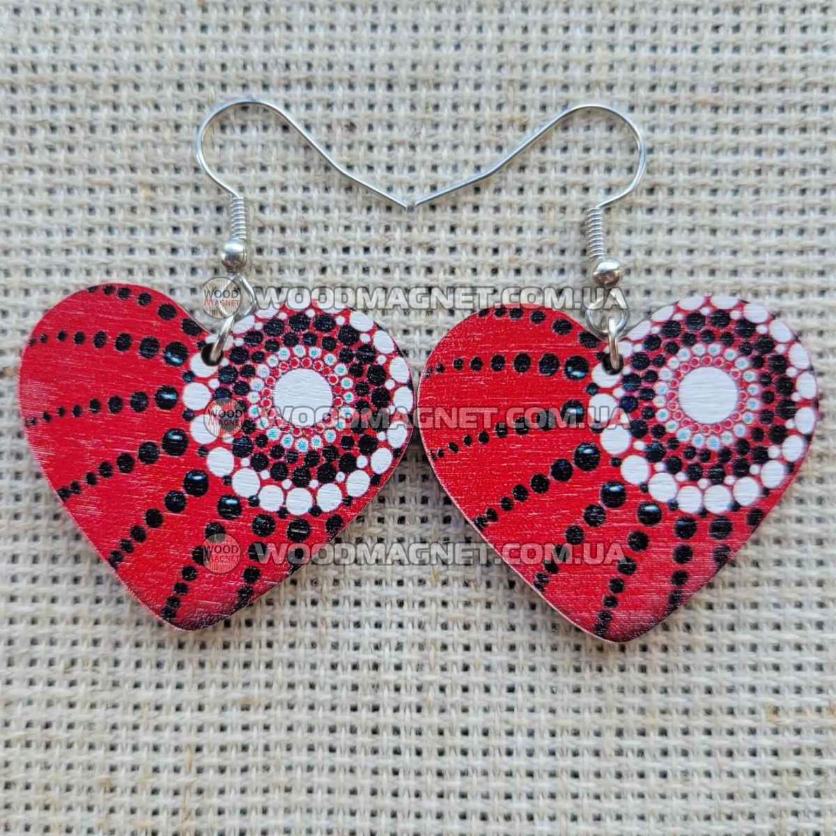 Еко сережки з дерева. Розмір приблизно 3*3*0,3 см. Зображення нанесено з двох сторін.Чудово пасують до вишиванок і не тільки:))
