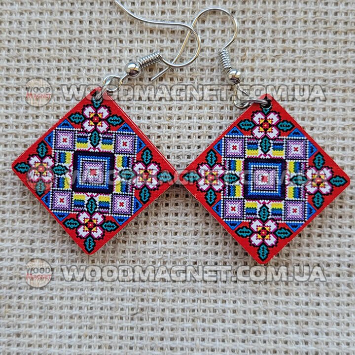 Еко сережки з дерева. Розмір приблизно 3*3*0,3 см. Зображення нанесено з двох сторін.Чудово пасують до вишиванок і не тільки:))
