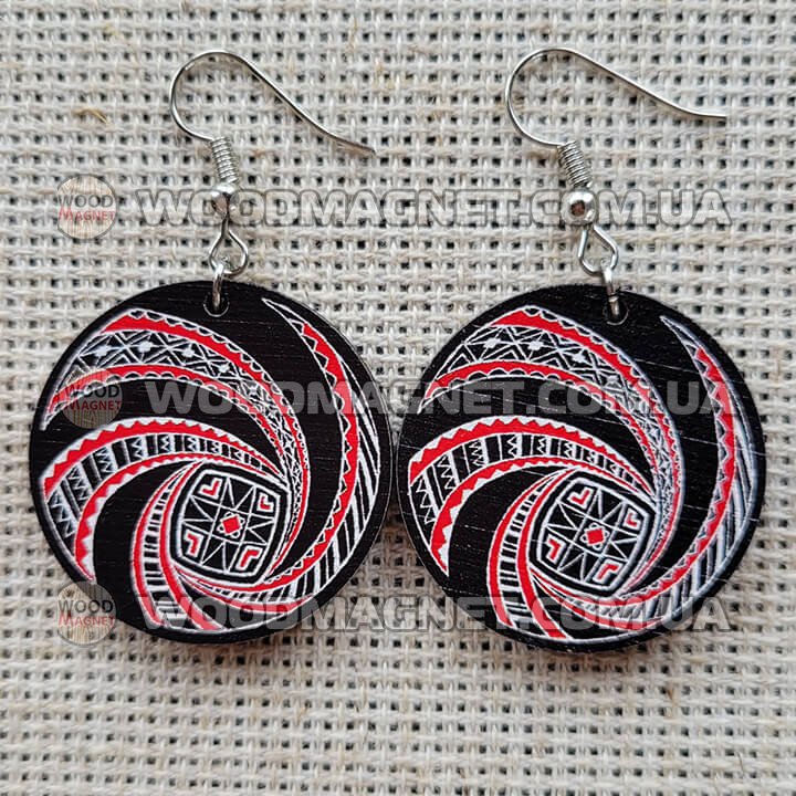 Еко сережки з дерева. Розмір приблизно 3*3*0,3 см. Зображення нанесено з двох сторін.Чудово пасують до вишиванок і не тільки:))