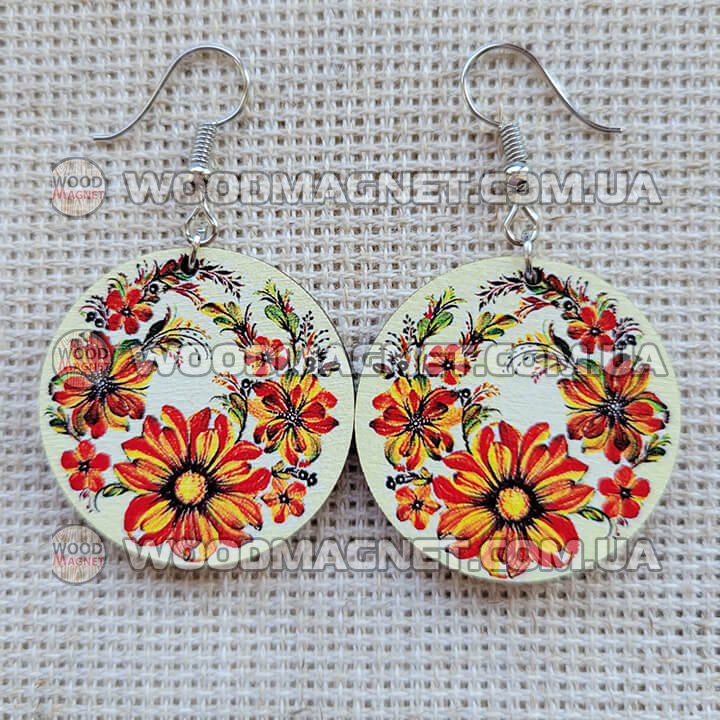 Еко сережки з дерева. Розмір приблизно 3*3*0,3 см. Зображення нанесено з двох сторін.Чудово пасують до вишиванок і не тільки:))
