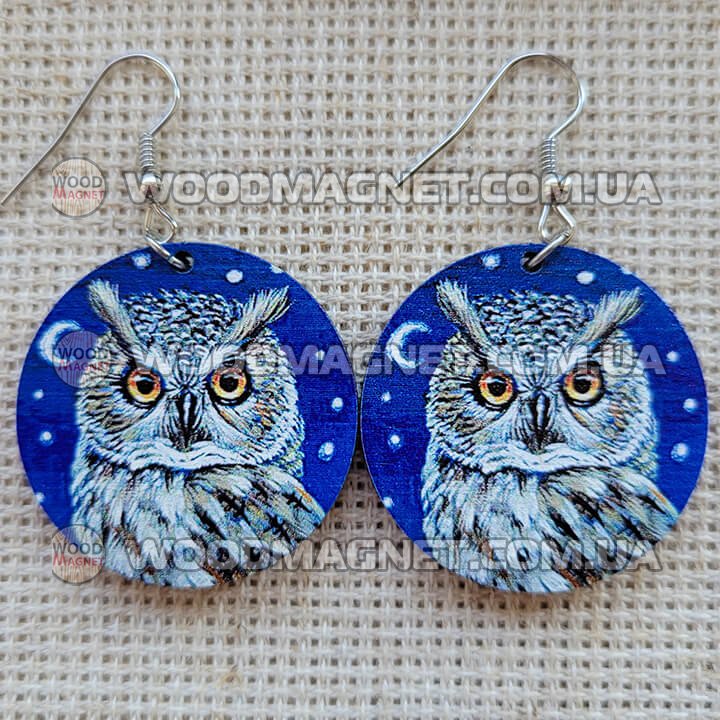 Еко сережки з дерева. Розмір приблизно 3*3*0,3 см. Зображення нанесено з двох сторін.Чудово пасують до вишиванок і не тільки:))