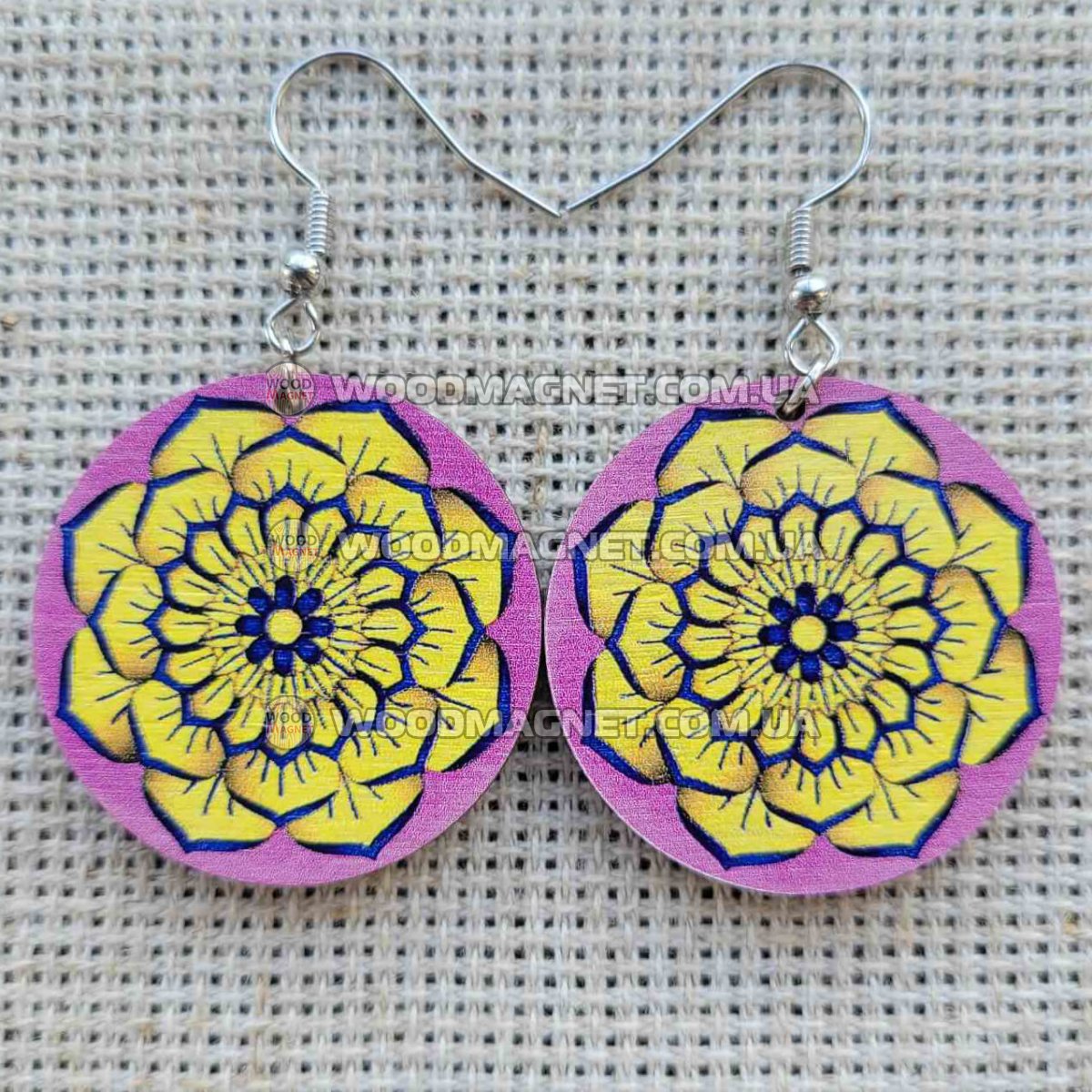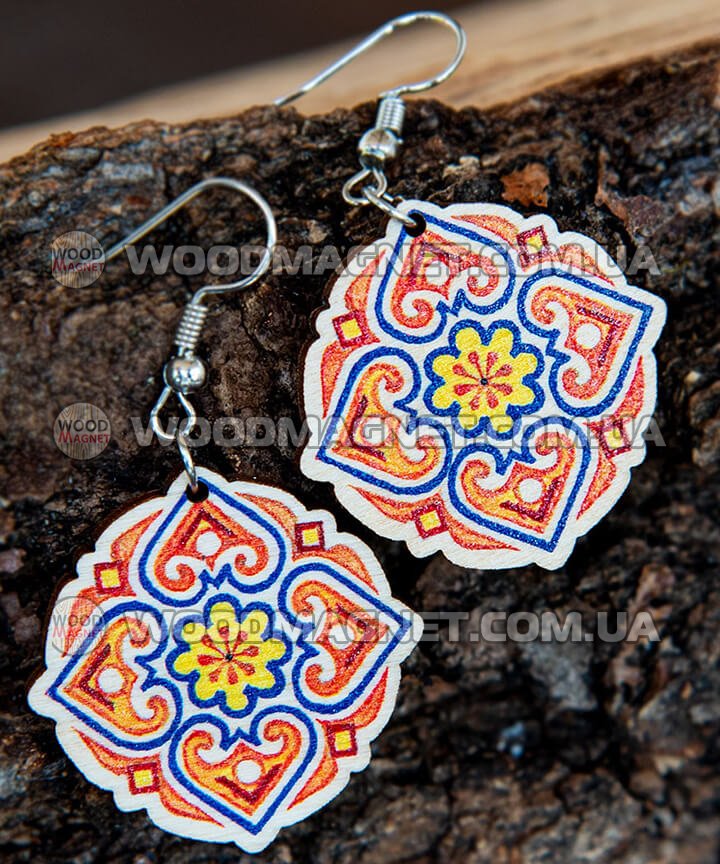 Еко сережки з дерева. Розмір приблизно 3*3*0,3 см. Зображення нанесено з двох сторін.Чудово пасують до вишиванок і не тільки:))