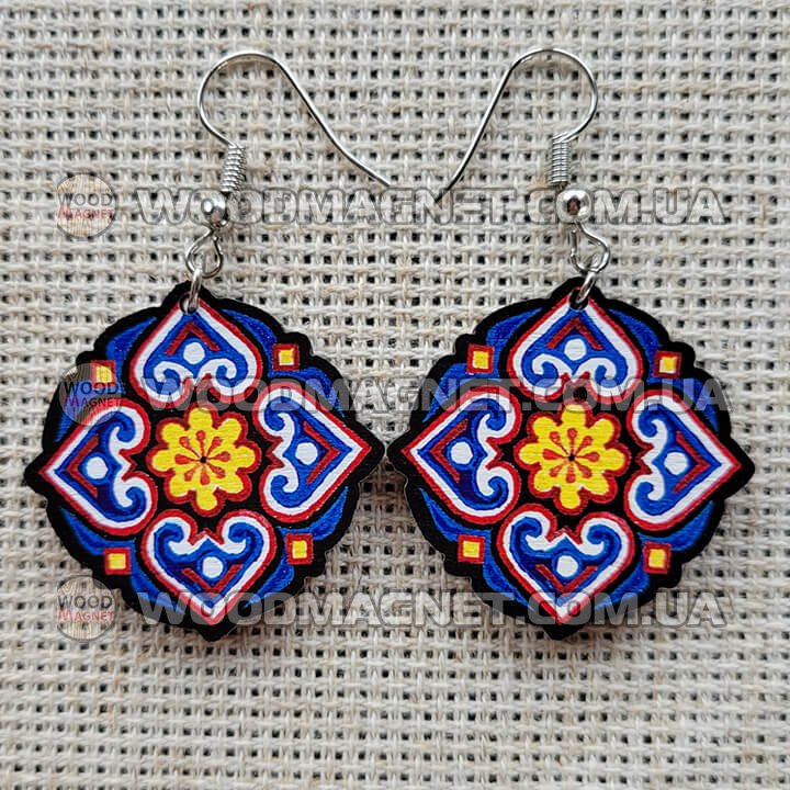 Еко сережки з дерева. Розмір приблизно 3*3*0,3 см. Зображення нанесено з двох сторін.Чудово пасують до вишиванок і не тільки:))