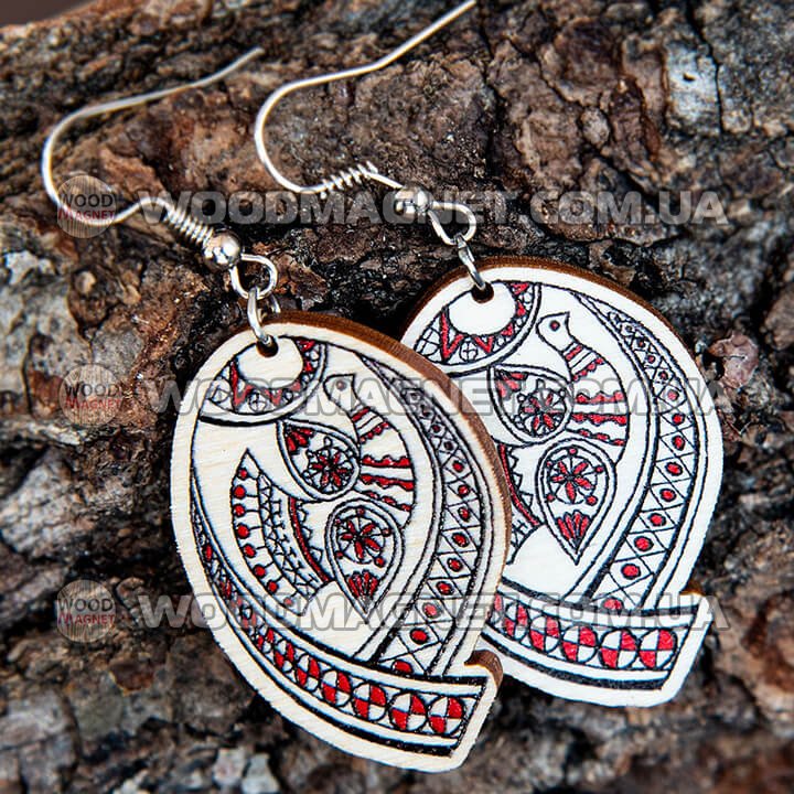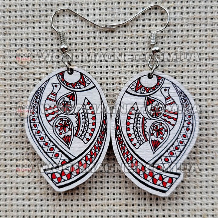 Еко сережки з дерева. Розмір приблизно 3*3*0,3 см. Зображення нанесено з двох сторін.Чудово пасують до вишиванок і не тільки:))