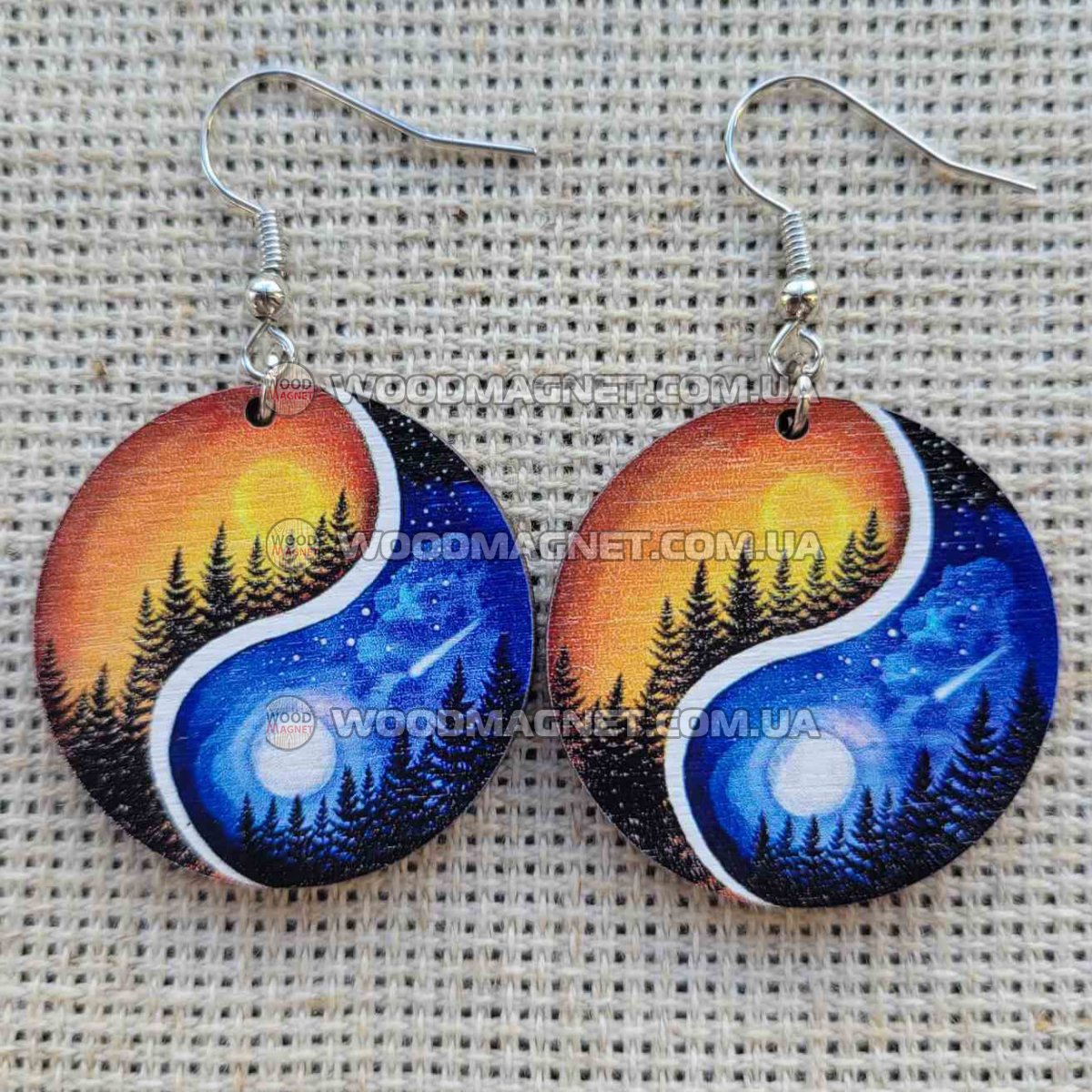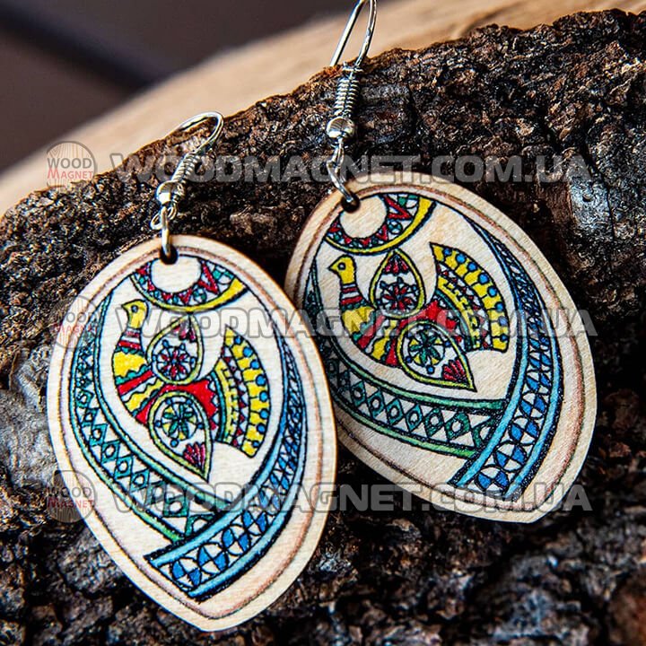 Еко сережки з дерева. Розмір приблизно 3*3*0,3 см. Зображення нанесено з двох сторін.Чудово пасують до вишиванок і не тільки:))