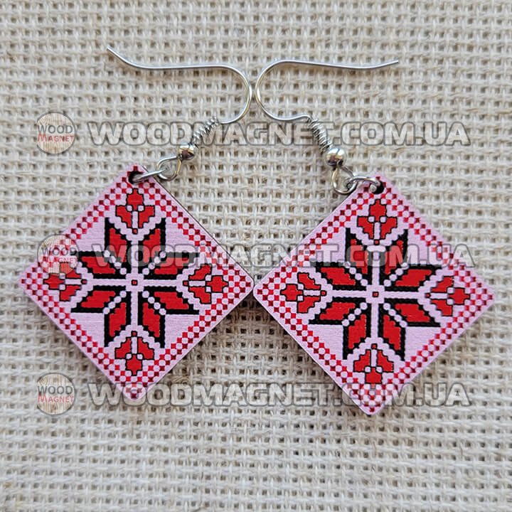 Еко сережки з дерева. Розмір приблизно 3*3*0,3 см. Зображення нанесено з двох сторін.Чудово пасують до вишиванок і не тільки:))