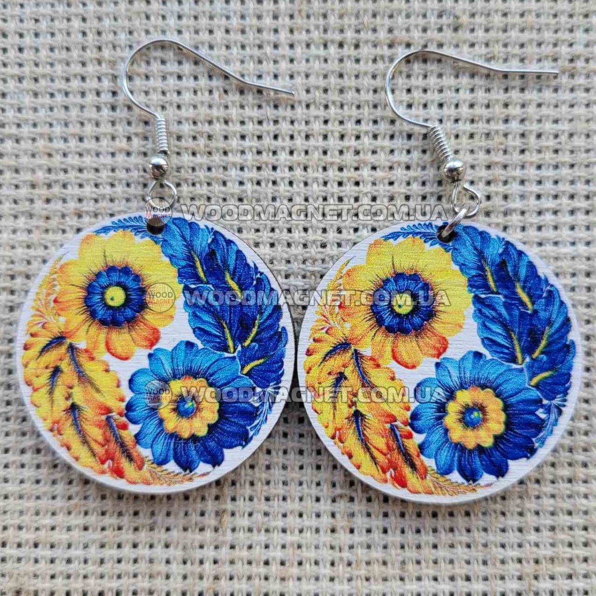 Еко сережки з дерева. Розмір приблизно 3*3*0,3 см. Зображення нанесено з двох сторін.Чудово пасують до вишиванок і не тільки:))