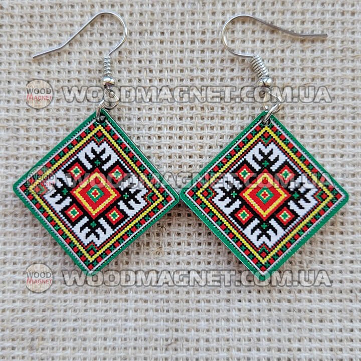 Еко сережки з дерева. Розмір приблизно 3*3*0,3 см. Зображення нанесено з двох сторін.Чудово пасують до вишиванок і не тільки:))