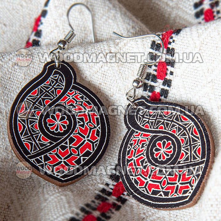 Еко сережки з дерева. Розмір приблизно 3*3*0,3 см. Зображення нанесено з двох сторін.Чудово пасують до вишиванок і не тільки:))