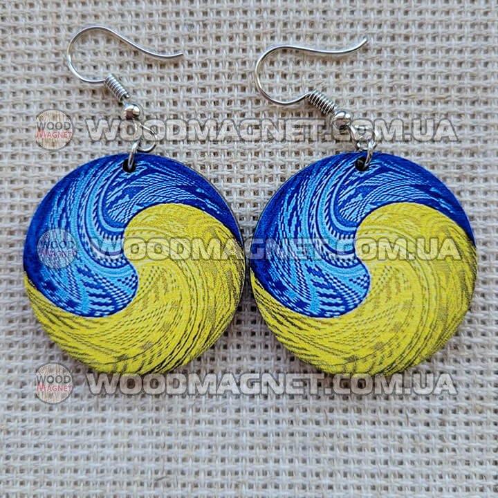 Еко сережки з дерева. Розмір приблизно 3*3*0,3 см. Зображення нанесено з двох сторін.Чудово пасують до вишиванок і не тільки:))