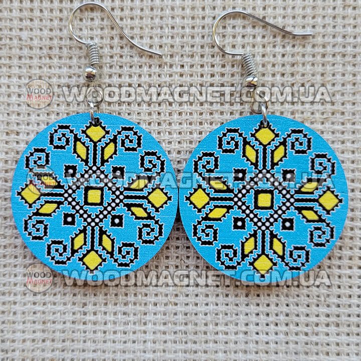 Еко сережки з дерева. Розмір приблизно 3*3*0,3 см. Зображення нанесено з двох сторін.Чудово пасують до вишиванок і не тільки:))