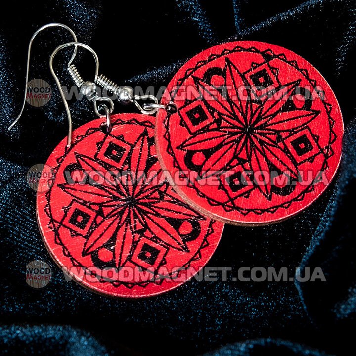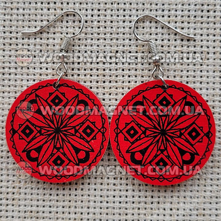 Еко сережки з дерева. Розмір приблизно 3*3*0,3 см. Зображення нанесено з двох сторін.Чудово пасують до вишиванок і не тільки:))