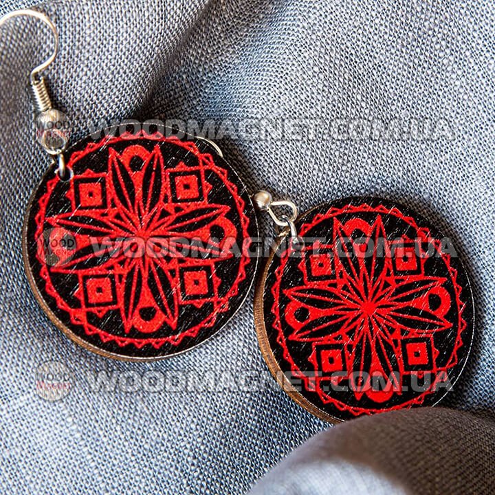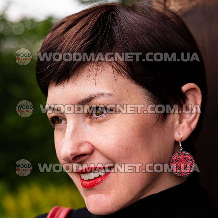 Еко сережки з дерева. Розмір приблизно 3*3*0,3 см. Зображення нанесено з двох сторін.Чудово пасують до вишиванок і не тільки:))