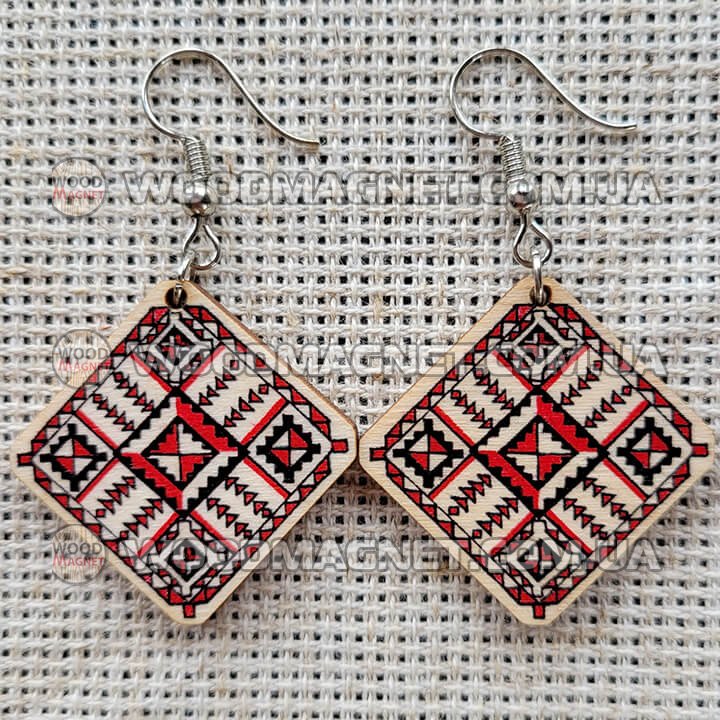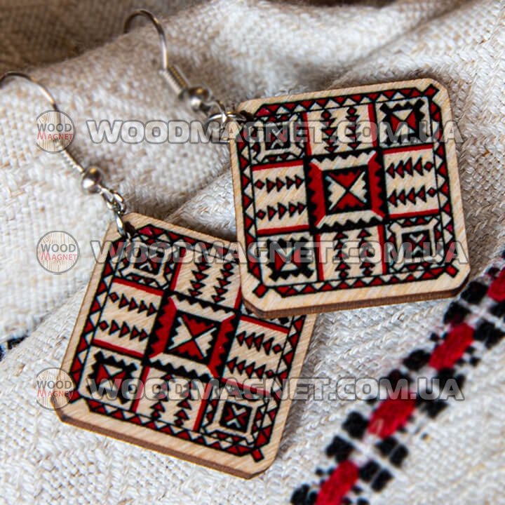 Еко сережки з дерева. Розмір приблизно 3*3*0,3 см. Зображення нанесено з двох сторін.Чудово пасують до вишиванок і не тільки:))
