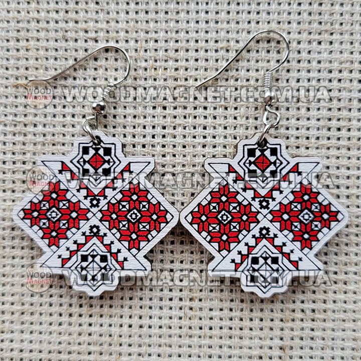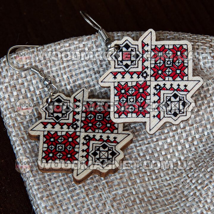 Еко сережки з дерева. Розмір приблизно 3*3*0,3 см. Зображення нанесено з двох сторін.Чудово пасують до вишиванок і не тільки:))