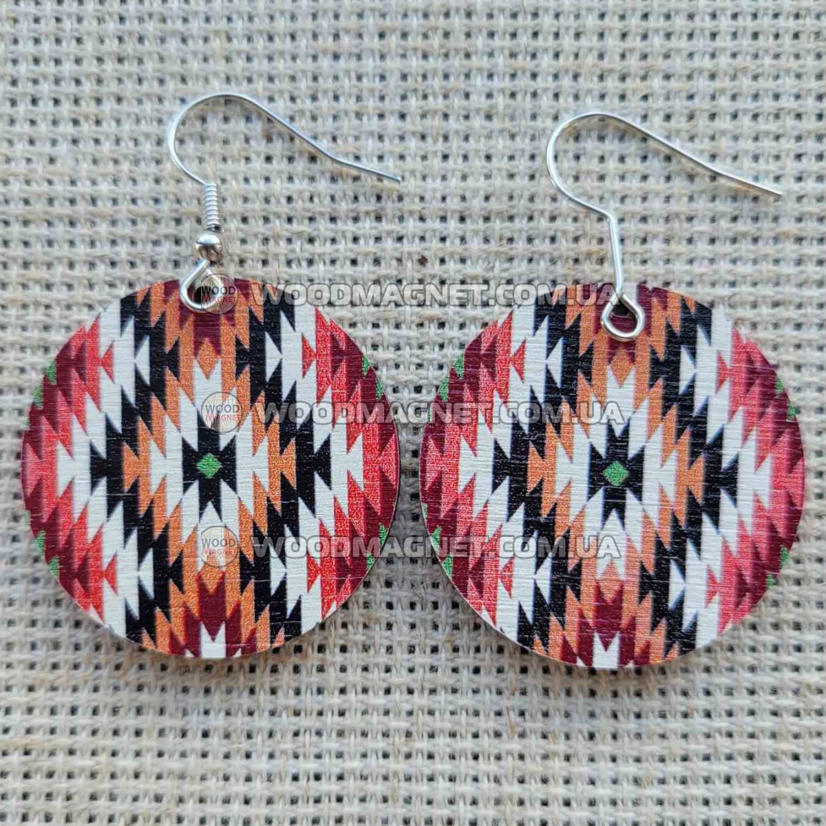 Еко сережки з дерева. Розмір приблизно 3*3*0,3 см. Зображення нанесено з двох сторін.Чудово пасують до вишиванок і не тільки:))