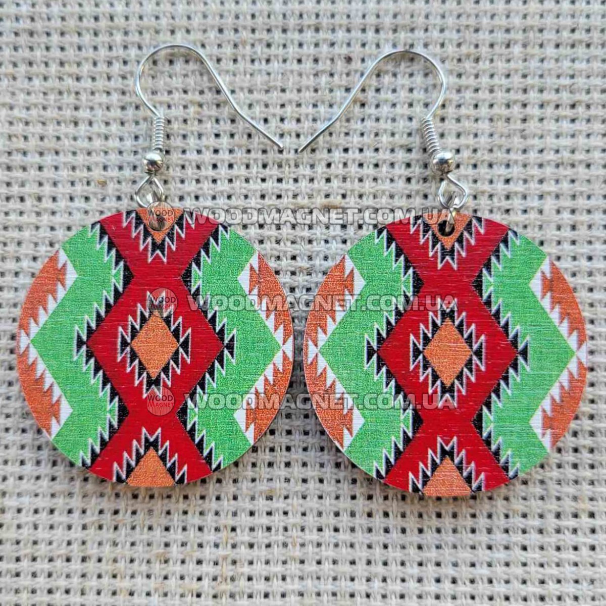 Еко сережки з дерева. Розмір приблизно 3*3*0,3 см. Зображення нанесено з двох сторін.Чудово пасують до вишиванок і не тільки:))