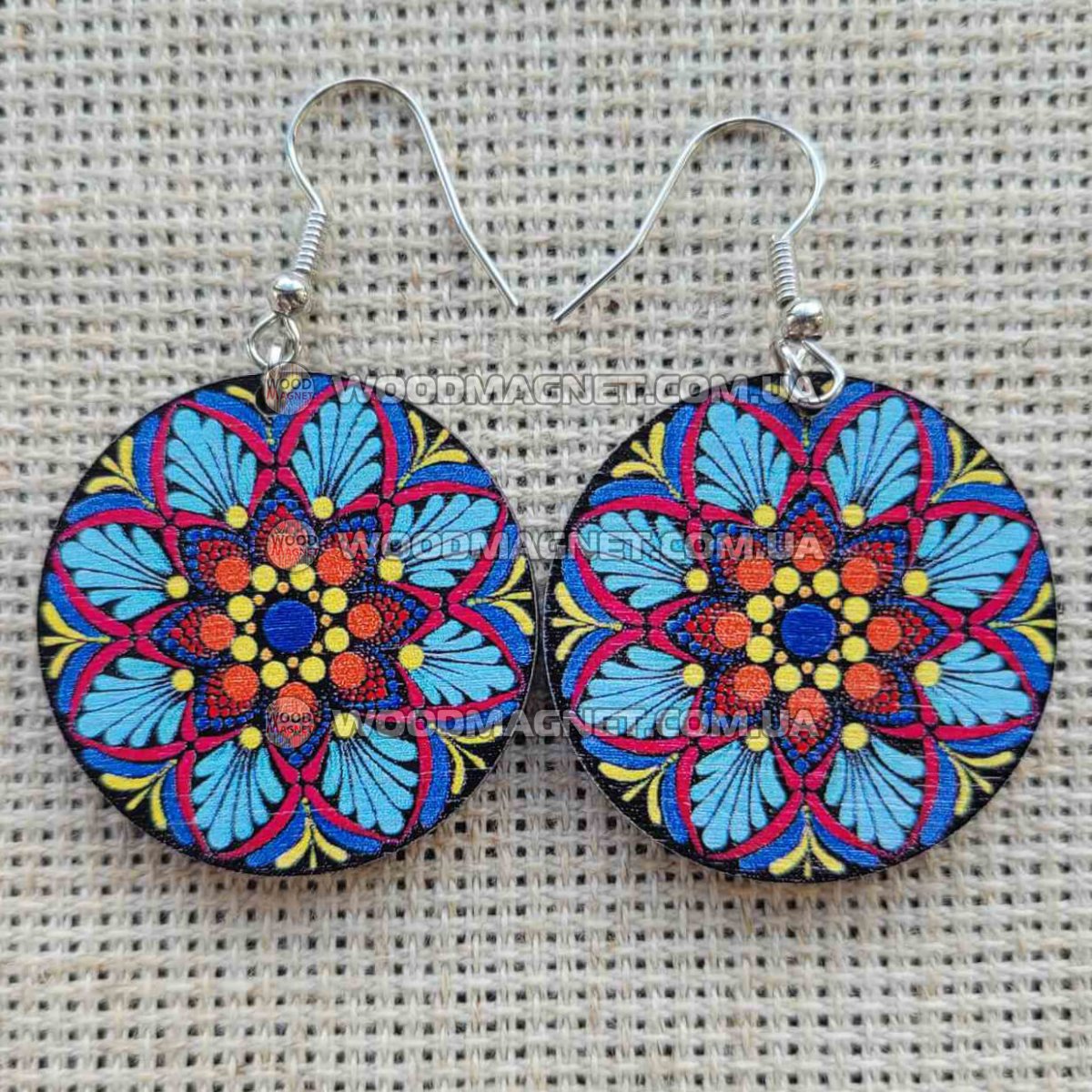 Еко сережки з дерева. Розмір приблизно 3*3*0,3 см. Зображення нанесено з двох сторін.Чудово пасують до вишиванок і не тільки:))