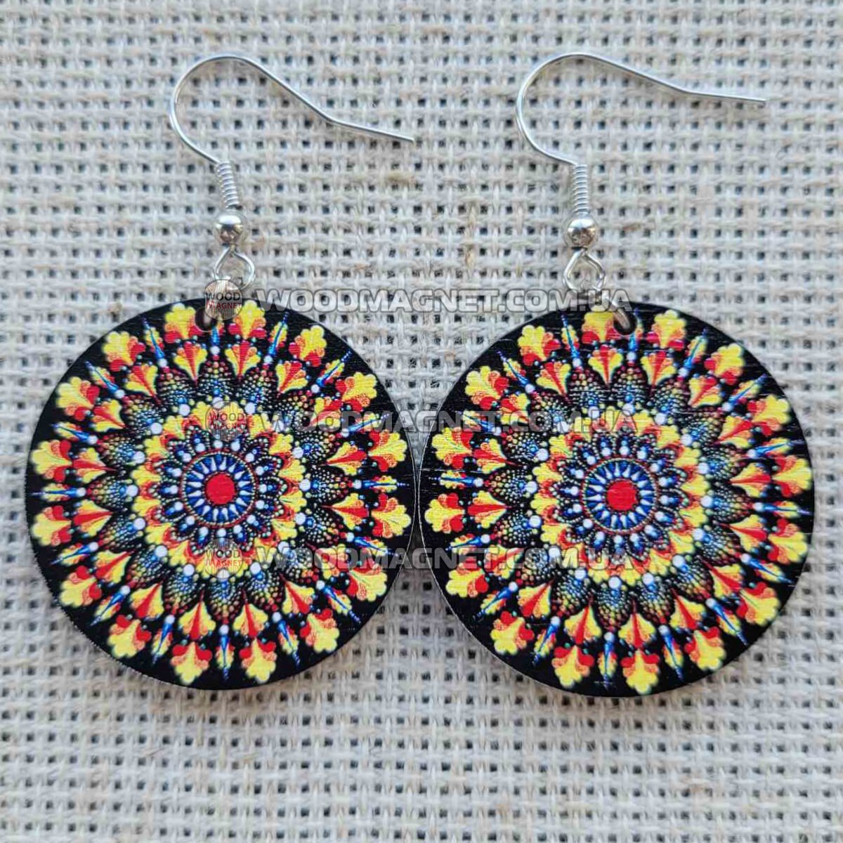 Еко сережки з дерева. Розмір приблизно 3*3*0,3 см. Зображення нанесено з двох сторін.Чудово пасують до вишиванок і не тільки:))