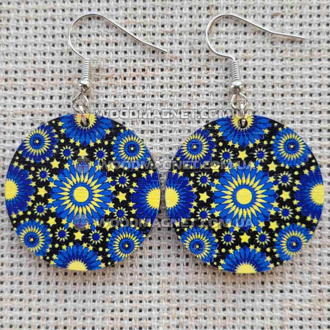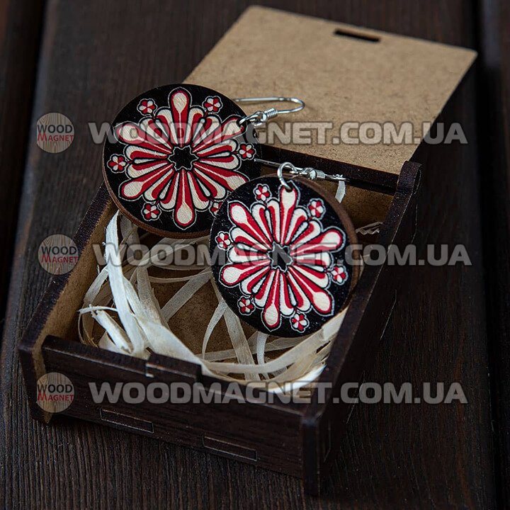 Еко сережки з дерева. Розмір приблизно 3*3*0,3 см. Зображення нанесено з двох сторін.Чудово пасують до вишиванок і не тільки:))