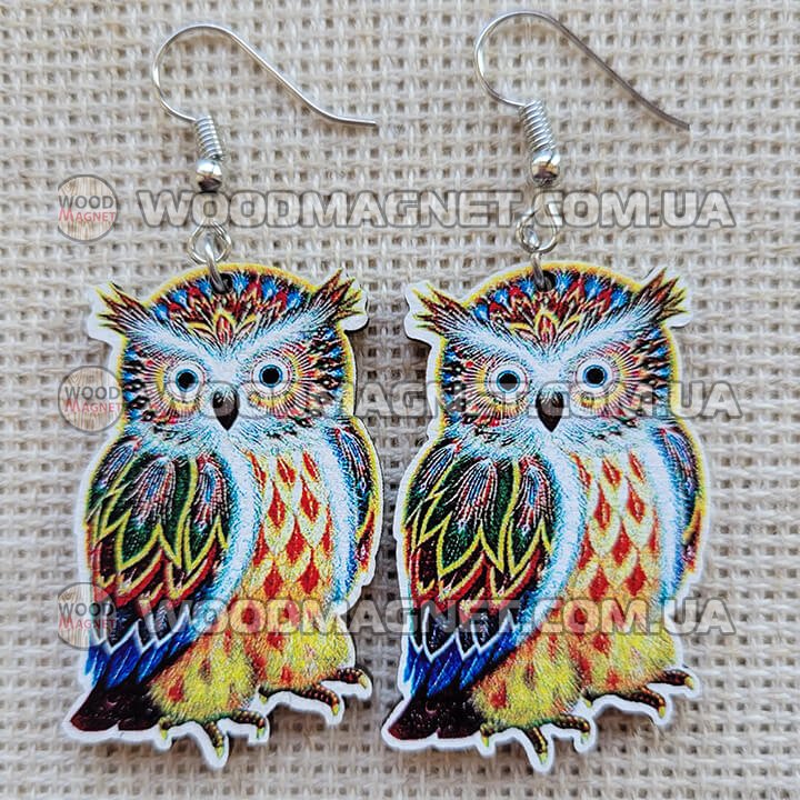 Еко сережки з дерева. Розмір приблизно 3*3*0,3 см. Зображення нанесено з двох сторін.Чудово пасують до вишиванок і не тільки:))