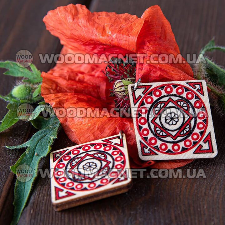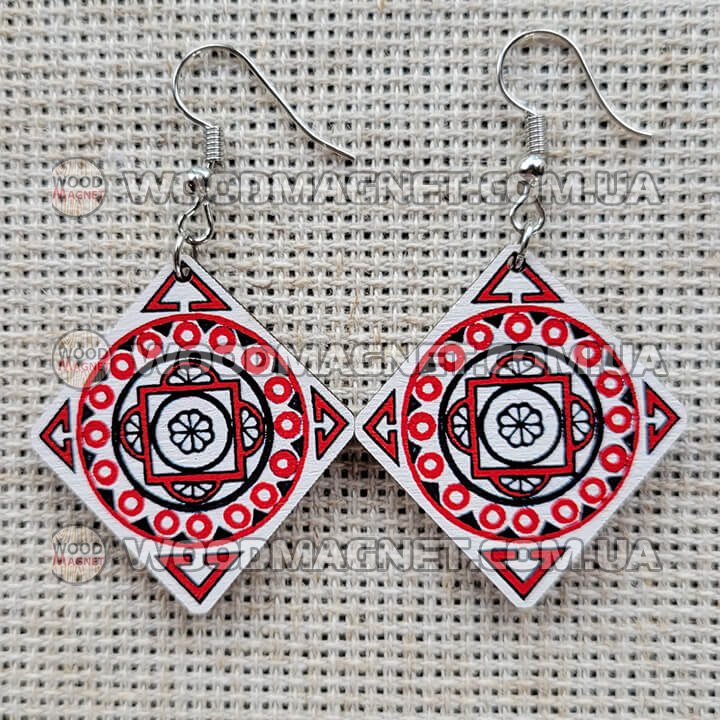Еко сережки з дерева. Розмір приблизно 3*3*0,3 см. Зображення нанесено з двох сторін.Чудово пасують до вишиванок і не тільки:))